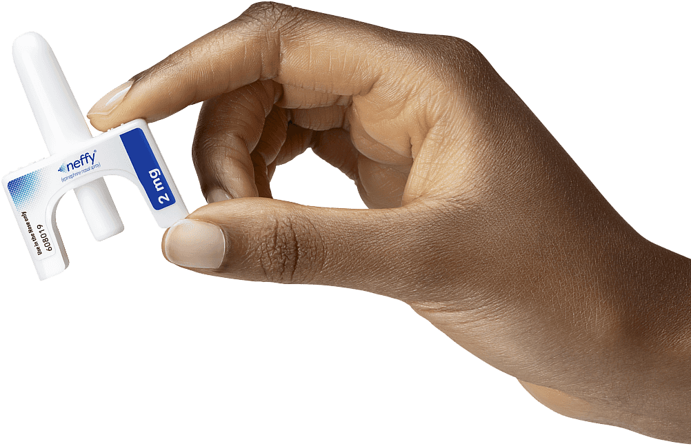 Always carry two neffy nasal sprays with you because you may not know when anaphylaxis may happen and because you may need a second dose of neffy if symptoms continue or come back. Each neffy contains a single dose of epinephrine. neffy is for use in the nose only.